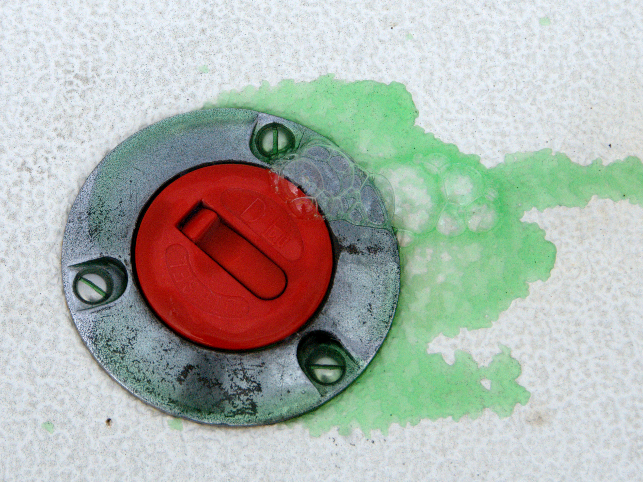 Det bubblar från tanklocket.